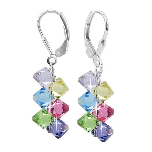 Buy Now! SCER001 Made with Swarovski Elements® Multicolor Cluster Crystal Sterling Silver Leverback 1.5" Long Dangle Earrings